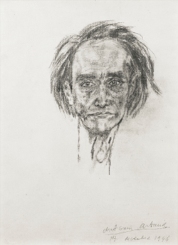 Jean-Luc Nancy, observant les portraits d’Artaud, notait précisément la présence d’ « un grand silence entre ces lèvres si minces qui ne cesseront pas de barrer tous ces portraits de la cicatrice du silence ».