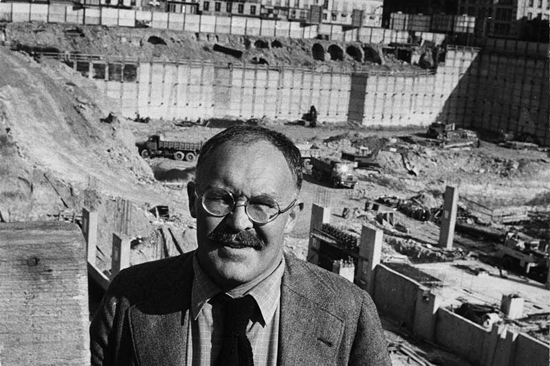 Tu trouves cette photo datée de 1974 ( ?) très belle, où l’on voit Pontus devant le chantier de Beaubourg.