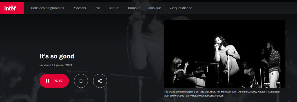 L.A. Woman dans la belle émission de Matthieu Conquet, « Et je remets le son » (à partir de 27 minutes 15).